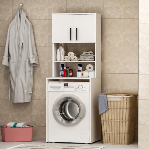 Homidea Mia Tvättmaskinsskåp, högskåp för badrum, överskåp för tvättmaskin och torktumlare för kök och badrum, 182,1 x 65 x 60 cm (vit)