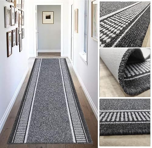 Tadi & Imperio1979 Lång matta för hall, kök, entré halkfri grå färg tvättbar i tvättmaskin och hand.