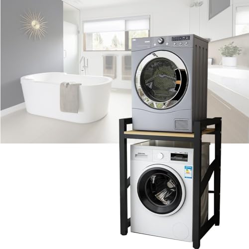 WPPTNSFY Tvättmaskinsstativ i metall, tvättmaskin, stapelbar kit för tvättmaskin och torktumlare, höjdjusterbar, lastkapacitet 300 kg för badrum tvättstuga