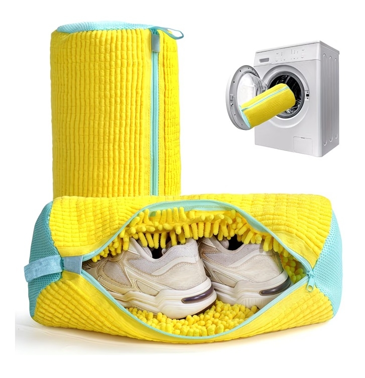 Skotvättpåse tvättmaskin, tvättpåse skor tvättmaskin, sneakers sko tvättpåse, skor tvättmaskinspåse med 360° rengöringsfluff, skosäck för tvättmaskin och torkning (gul-2 st)