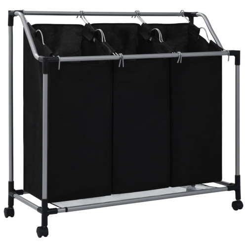 Rullande tvättsorterare med 3 påsar, svart