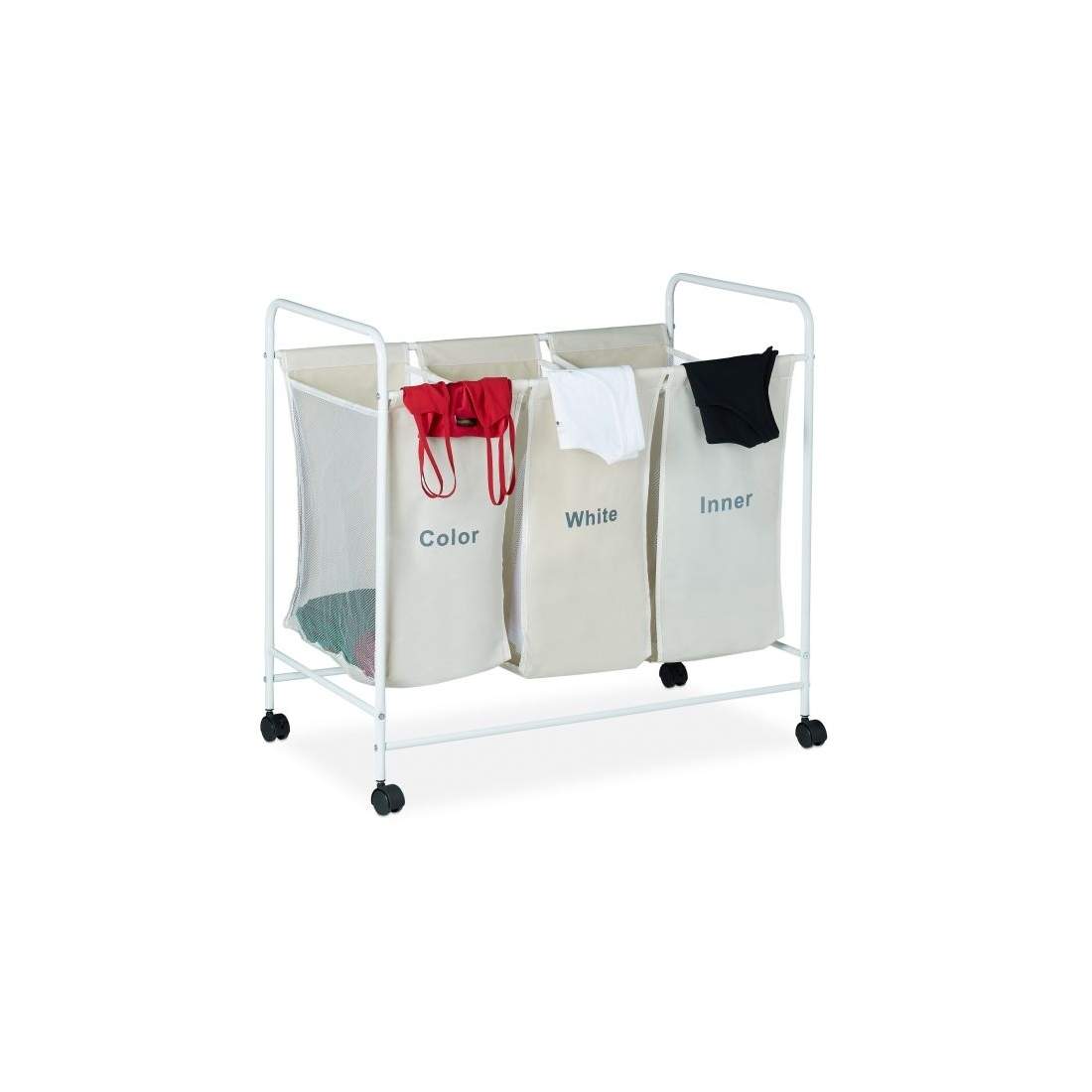 Tvättsorterare med 3 påsar gräddvit stål
