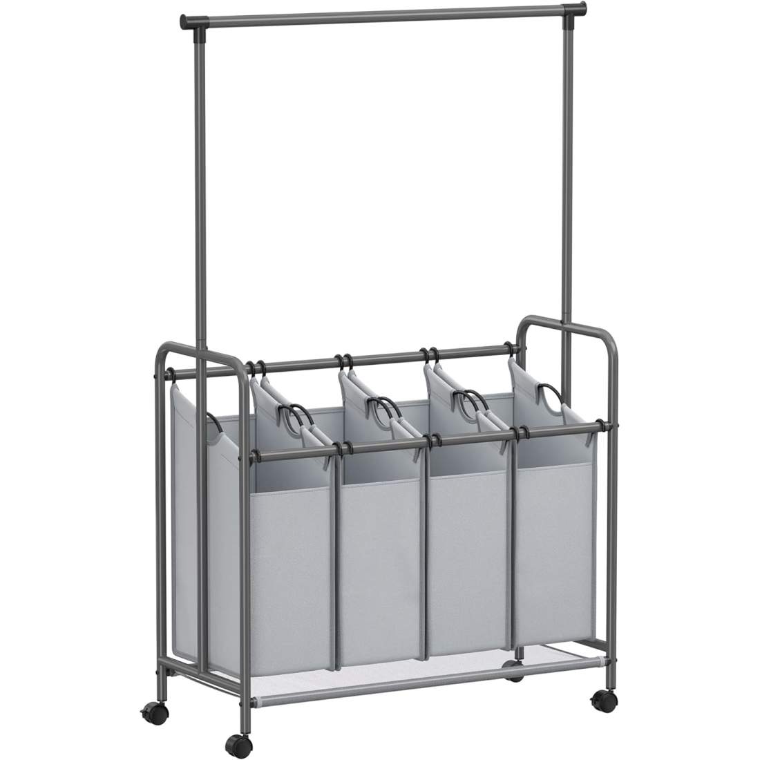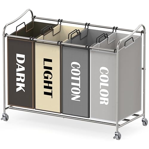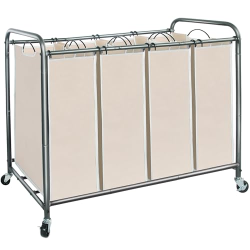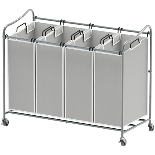 Simple Houseware 4-väska kraftig tvättsorterare rullvagn, silver