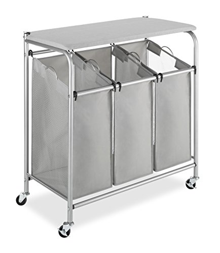 Whitmor 3 sektioner rullande tvättsorterare med hopfällbar station – strykbräda, krom/grå