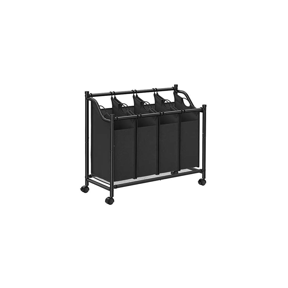 Songmics Tvättkorg, tvättsorterare med 4 avtagbara tygpåsar, rullar, förvaring för leksaker, 4 x 35 liter, svart LSF005