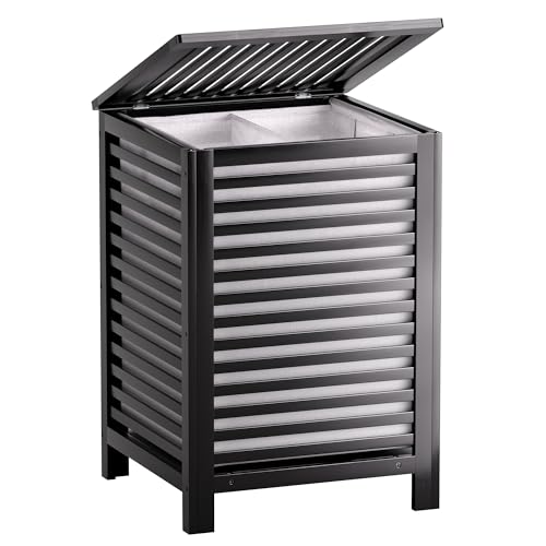 SMIBUY Dubbel tvättkorg med lock, 120L Bambu tvättkorg med avtagbar foderpåse, 2-sektions tvättsorterare, Badrum, Sovrum (Svart)