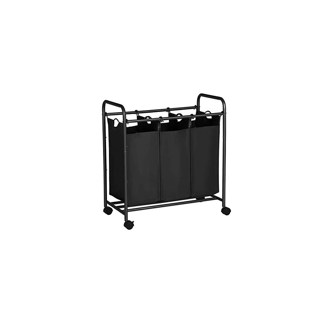 STORAGE MANIAC 3 sektioner tvättsorterare, 3 påsar tvättkorg med kraftiga rullande låsbara hjul och avtagbara väskor, svart