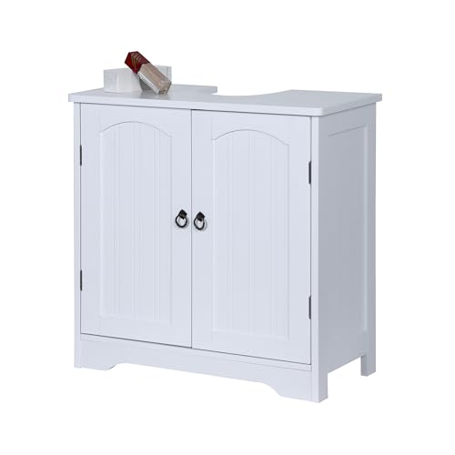 EUGAD Underskåp Tvättställ med dörrar, förvaringsskåp för badrum, justerbar hylla och halkfria fötter, modern stil, vit, 50 x 30 x 60 cm
