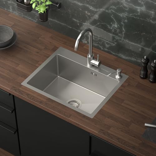 ML-Design Diskbänk 55 x 45 cm Med Avloppssats Och Tvålpump - Tillverkad i Rostfritt Stål - Diskho Tvättställ Inbyggd