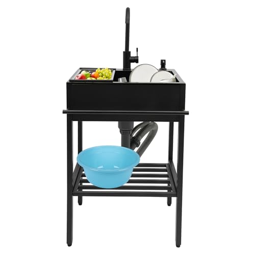 OUKANING rostfritt stål tvättställ utomhus 80 x 55 x 84 cm diskbänk i rostfritt stål fristående med 360° kran, stänksäker, fuktbeständig, utmärkt dränering (diskbänk: vänster)