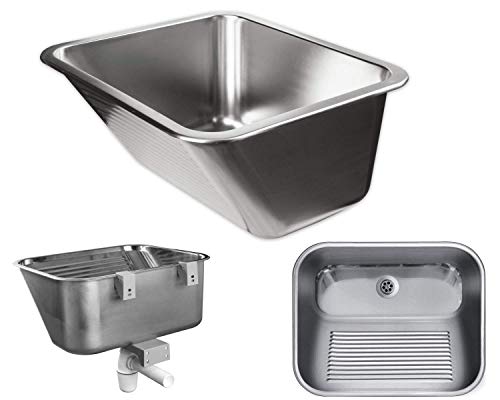 VBChome Vask, 55 x 45 x 22 cm, tvättho i rostfritt stål, satinstruktur, avloppssats, tvättställ för kommersiellt tvättrum, mobilt väggtvättställ, 50, vägghandfat, trädgård