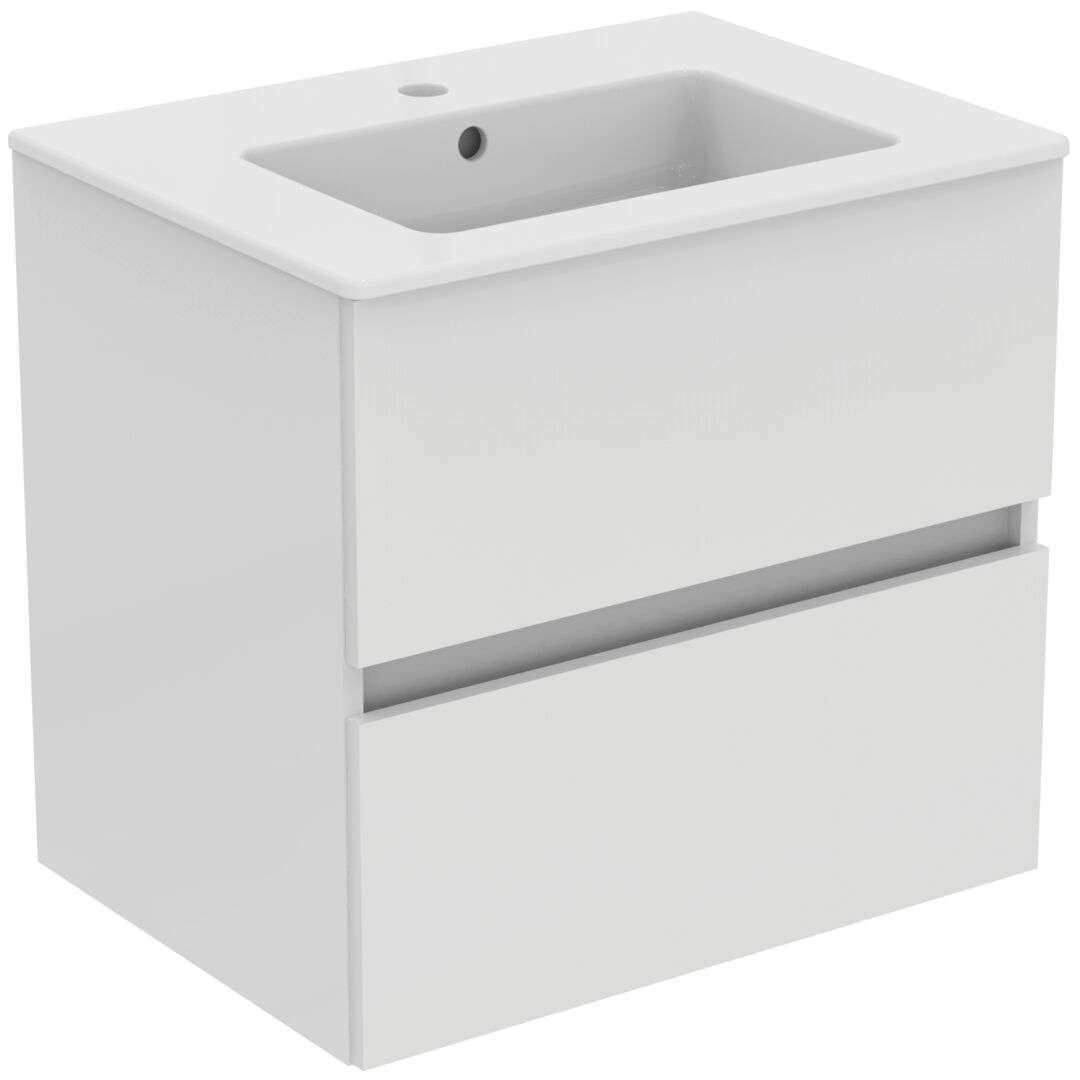 Ideal Standard Eurovit - Skåp med tvättställ, 55x60x44 cm, 2 lådor, högblank vit R0572WG