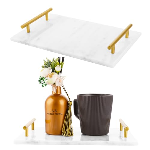Oungy Serveringsfat i marmor med handtag, dekorativ serveringsbricka marmor, rektangulär bricka, förlovningstablett av marmor för kök badrum byrå dekor tvättställ, 30 x 20 x 4,5 cm (grå)