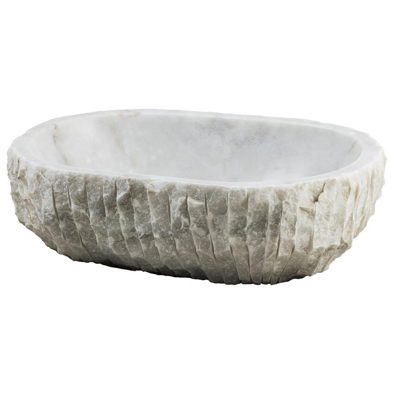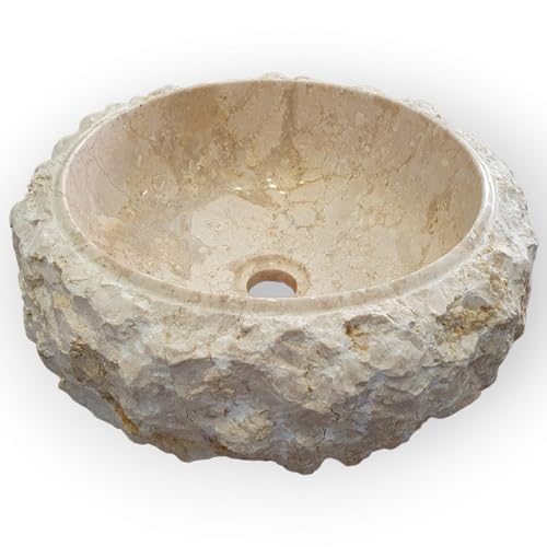 Natursten tvättställ marmor – överdel tvättskål i 2 storlekar – ljus marmor med grov huggen utsida (Ø 40 cm)
