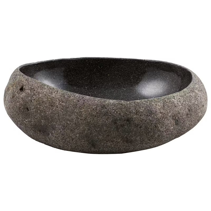 Natursten handfat Andesit marmor – krosssten toppsats tvättskål – oval toppmonterat tvättställ för badrummet i svart natursten, polerad insida, utsida krosssten utseende