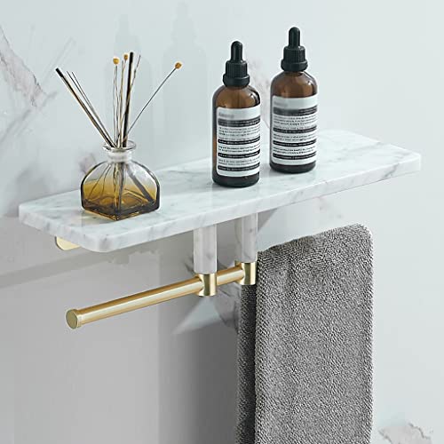 Duschhylla flytande hyllor marmor koppar förvaringsställ toalett tvättställ kosmetisk förvaringsställ kökshyllor väggmonterade kryddflaskor hållare organiserare handdukshylla/vit 50 cm med stång