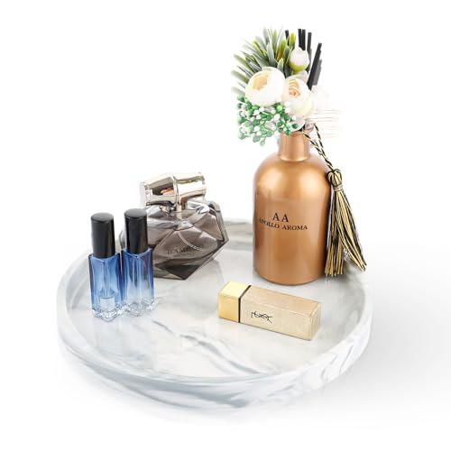 Oungy dekorativ bricka rund 25 cm marmor bricka vit marmorplatta deco tallrik keramisk tablett för bänkskiva, köksdiskbänk, tvättställ, badrum