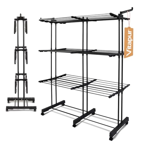 VITAPUR VertyDry Duo tvättställ, torktorn, 3-nivåer vertikal torkställ, platsbesparande för balkong, hopfällbar tvättställning