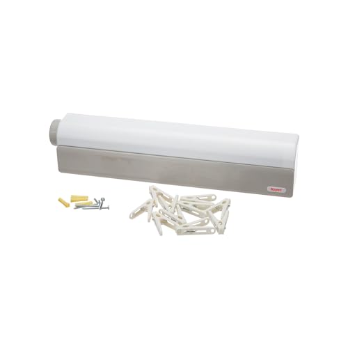 Avilia Infällbar tvättställning med 10 klämmor ingår - perfekt för inomhus- och utomhusbruk, av ABS och Polyester, vit och grå, 44 x 10 x 6 cm med 6 strängar på 3,7 m