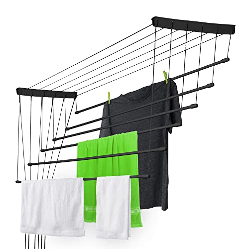 KADAX Torktumlare för tak, Torkställ, Tvättställning, 6, väggtork med polyeten stålribbor, taktork lastkapacitet 12 kg (6 x 160/svart)