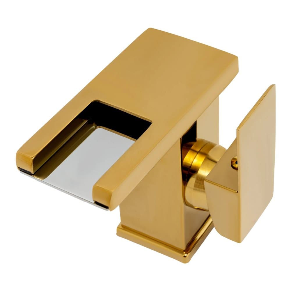 ONECE Tvättställsblandare, Vattenfall Badrumsblandare, Vattenfall Vattenkran för Badrum, Handfatskran i 304 Rostfritt Stål, Blandare Vattenfallsdesign, Engreppsblandare Varmt Och Kallt Vatten, Guld
