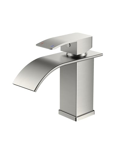 ONECE Tvättställsblandare, Vattenfall Badrumsblandare, Vattenfall Vattenkran för Badrum, Handfatskran i 304 Rostfritt Stål, Blandare Vattenfallsdesign, Engreppsblandare Varmt Och Kallt Vatten, Borstad