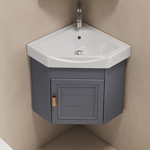 Hörn badrum tvättställsskåp med handfat, väggmonterad användbarhet tvättställ handfatsdesign, varm & kall kran kombination, stort förvaringsutrymme för litet utrymme, för hem kök uteplats rum (färg: