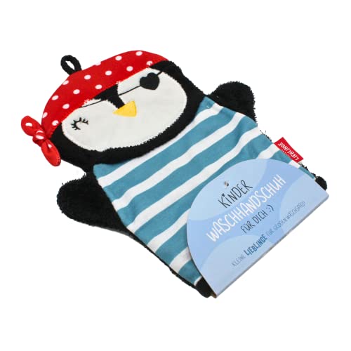 Dekohelden24 tvättvante för barn med ögla, pingvinmotiv, 100% bomull, storlek H/W ca. 24 x 20 cm, 24 cm