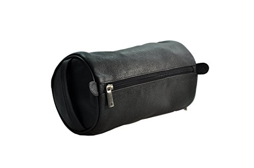 Pfeilring Tvättväska rund kohud läder med yttre fack svart