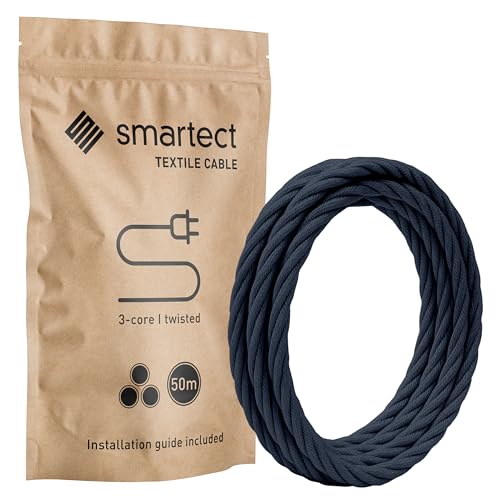 smartect Tvinnad Textilkabel för Lampor Antracit, 50 Meter Tvinnad trasa täckt Tråd, 3 Prong (3 x 0.75mm²) Trasa Elektrisk Sladd för DIY Projekt
