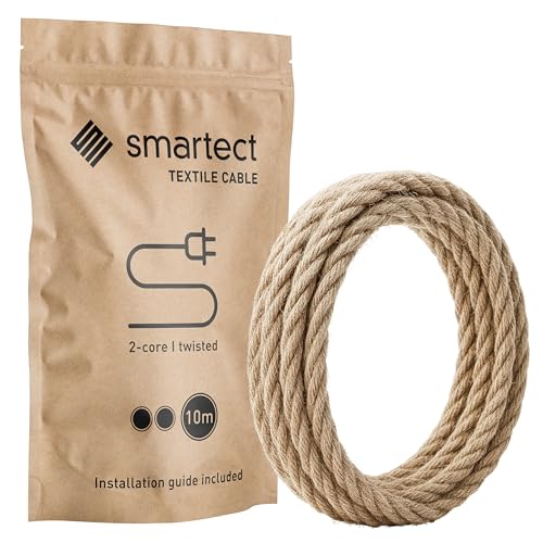 smartect Tvinnad Textilkabel för Lampor Jute, 10 Meter Tvinnad trasa täckt Tråd, 2 Prong (2 x 0.75mm²) Trasa Elektrisk Sladd för DIY Projekt