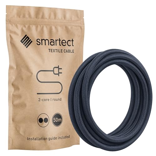 smartect Textilkabel för Lampor Antracit, 50 Meter Tvinnad trasa täckt Tråd, 2 Prong (2 x 0.75mm²) Trasa Elektrisk Sladd för DIY Projekt