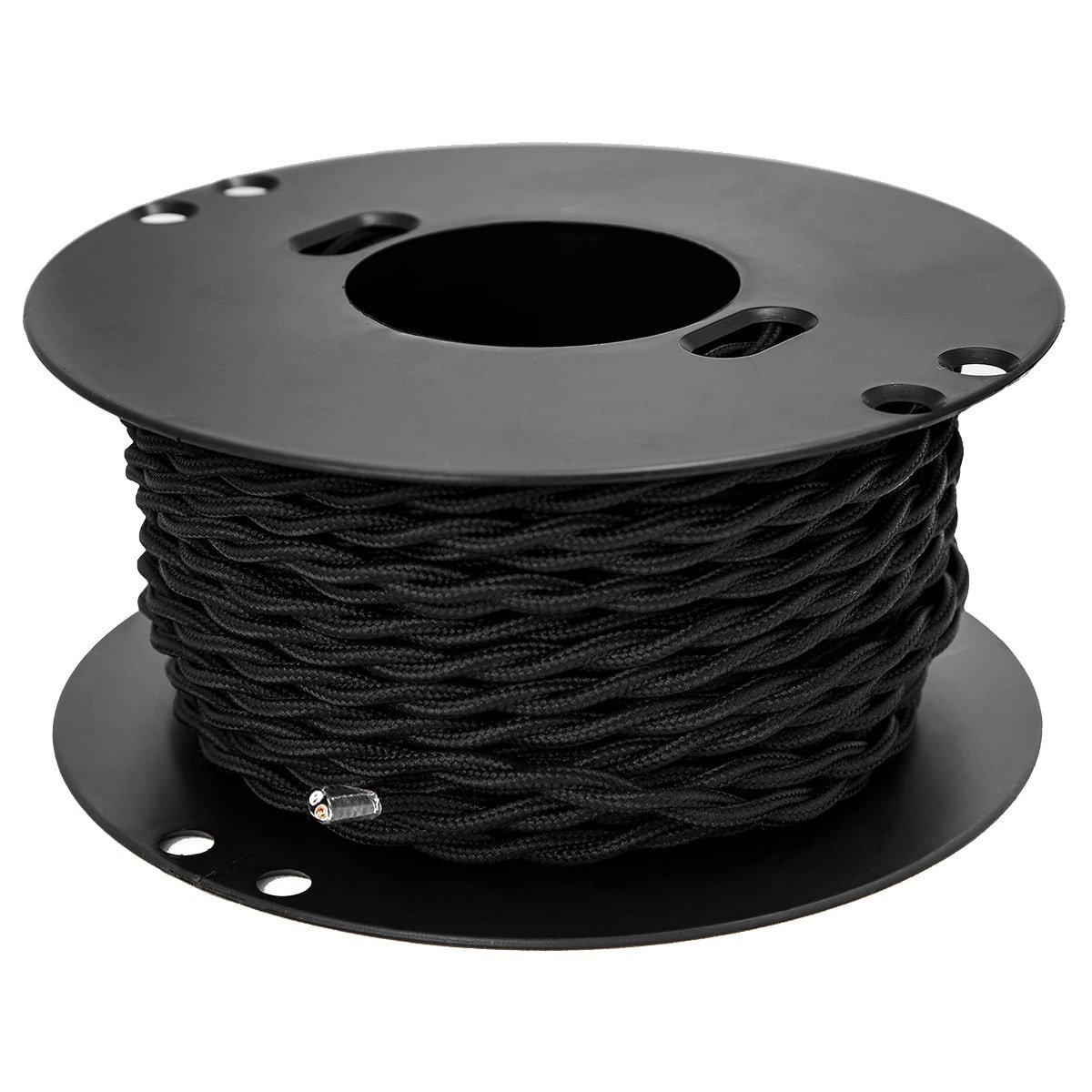 smartect Textilkabel för Lampor Svart, 50 Meter Tvinnad trasa täckt Tråd, 3 Prong (3 x 0.75mm²) Trasa Elektrisk Sladd för DIY Projekt