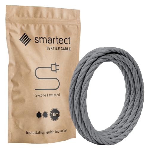 smartect Tvinnad Textilkabel för Lampor Antracit, 10 Meter Tvinnad trasa täckt Tråd, 2 Prong (2 x 0.75mm²) Trasa Elektrisk Sladd för DIY Projekt