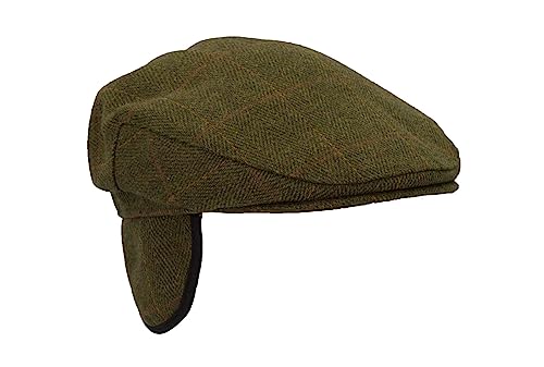 WALKER AND HAWKES - Derby Tweed Eddie platt keps med hopfällbara öronklaffar, Dark Sage, L