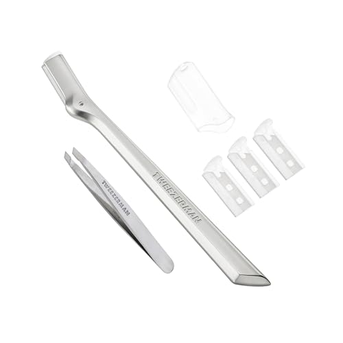 TWEEZERMAN ögonbrynsrakapparat inklusive mini sned pincettset (Mini Slant Tweezer & Brow Razor Set), silver