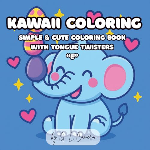 Kawaii Coloring with Tongue Twisters: Cute and simple coloring book for kids and adults with a silly tongue twister on each page centered around the letter "E"