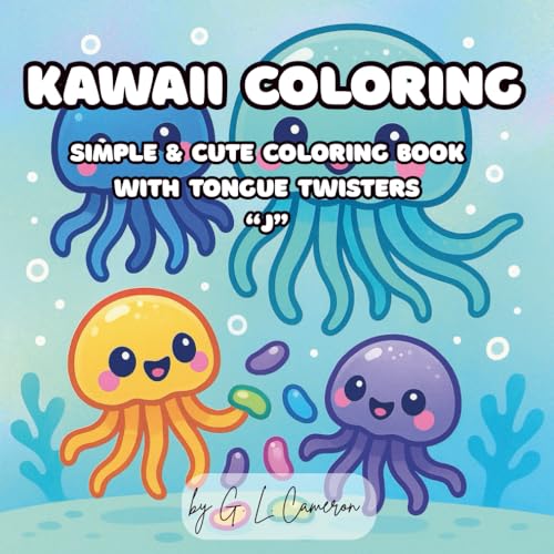 Kawaii Coloring Book for kids and adults with Tongue Twisters around the letter "J": Simple and basic coloring book with a playful tongue twister on each page for fun with phonics