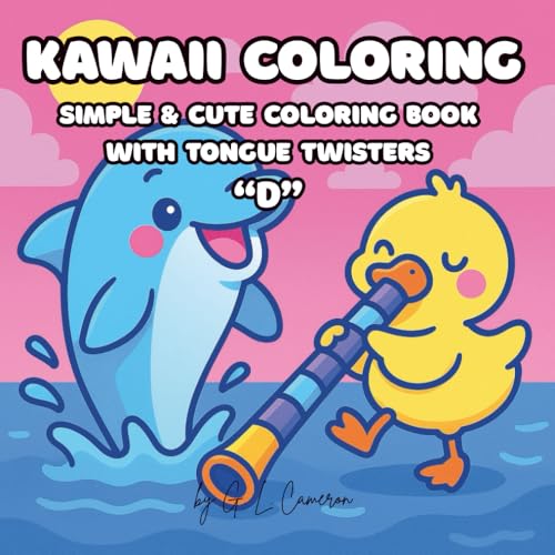 Kawaii Coloring with Tongue Twisters "D": Kawaii coloring book for kids and adults with a tongue twister on each page.