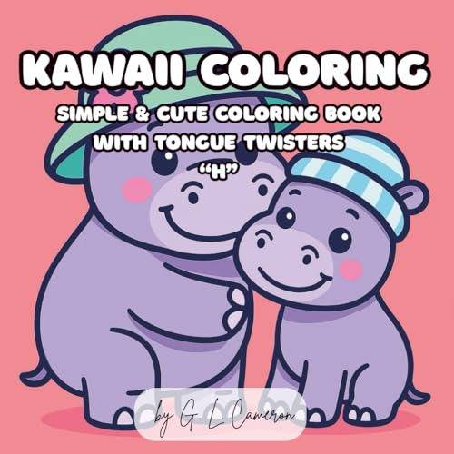 Kawaii Coloring with Tongue Twisters: Simple and cute coloring book for kids with a tongue twister on each page centered around the letter "H"