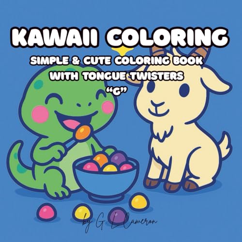 Kawaii Coloring with Tongue Twisters "G": Simple and cute coloring book for kids and adults with a tongue twister on each page centered around the letter "G"