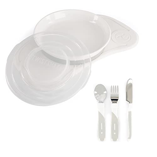 Twistshake Barnservis Set | 3-delad tallrik + Bebisskedar 3-pack | BPA-fri Barntallrik och Barnbestick | Matträningskit för barn | Barnmatsset | Bebisprodukter | Vit