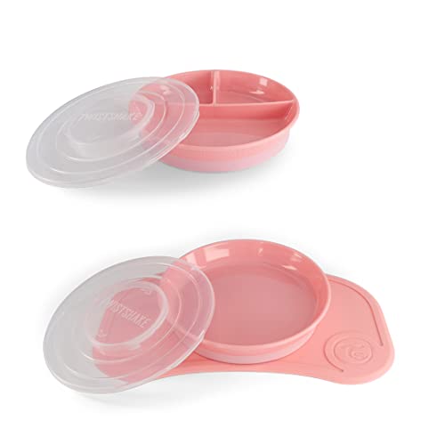 Twistshake Barnservis Set | 3-delad tallrik + Barnskål | BPA-fri Barntallrik och Barnskål | Matträningskit för barn | Babytallrik och Babyskål | Bebisprodukter | Rosa