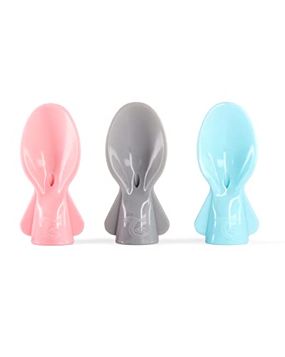 Twistshake Babyskedar för Matning - Set om 3 | Att Paras ihop med Twistshake Klämpåse | Återanvändbar Baby Avvänjningssked | Självmatande Sked för Bebisar | BPA-fri | Blå Rosa Grå