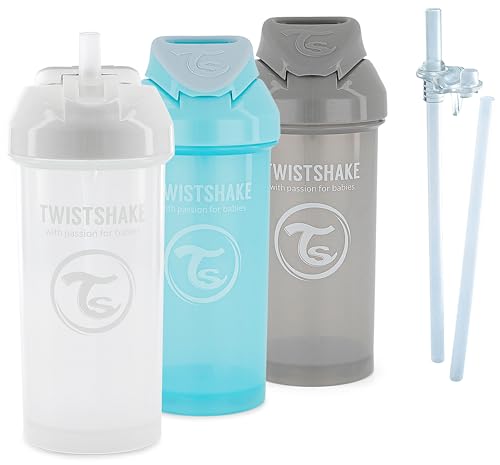 Twistshake Baby Sippy Cup Set -3 Delar |2x 360 Kopp -1x Halmkopp |Inkluderar 2 extra Sugrör och en Läcksäker Tätning | Träning Sippy Cup för Barn | Läckagesäkra Nappvattenflaskor | BPA-fri | Rosa Blå