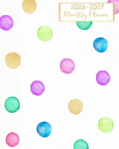 2026-2027: Polka Dot 90s Theme Watercolor Dots Calendar for Women 26,27 - Two Year 2026 2027 Agenda, Large 8 x 10