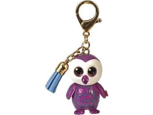 TY - Mini Boos Clips nyckelring ring - uggla - månsken - lila och blå - med ljusblå tofs - modenyckelringen inspirerad av de berömda plyschleksakerna med glittrande stora ögon - 10 cm - 25054