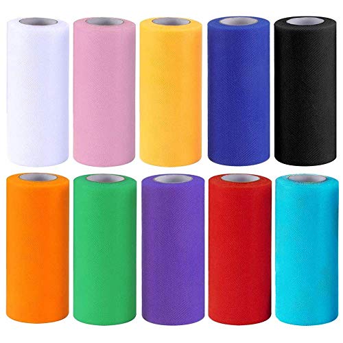 Bkrdty Rullar tyll band 10 rulle tyll dekoration 6 tum 25 meter regnbåge färg organza tyg för bröllop, födelsedag tutu förpackning bankett hantverk