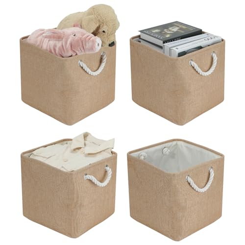 Förvaringsbox vikbar låda (4-pack) 30 x 30 x 30, stora hopfällbara lådor förvaringskorg tyg, korgar förvaring, förvaringsboxar, korgar för hyllor kallax, för kläder leksaker verktyg garderob (kaki)
