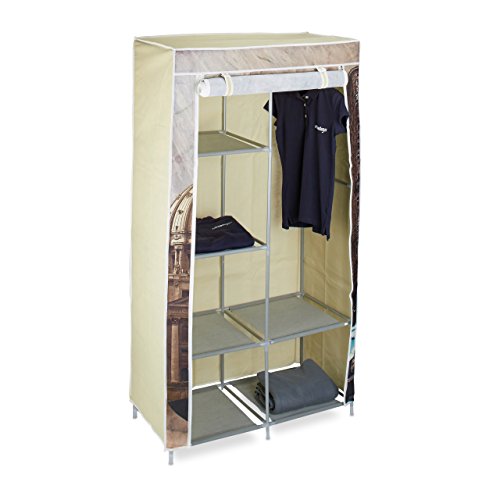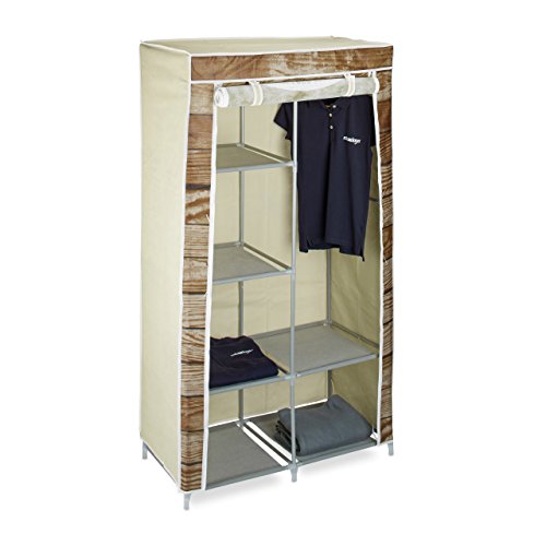 Relaxdays Fällbart Skåp i Träutseende HBL: ca 161 x 83,5 x 42,5 cm Garderob av Tyg med 6 Hyllor och Klädställ Tygskåp som Garderobsskåp och Campingskåp, Garderob